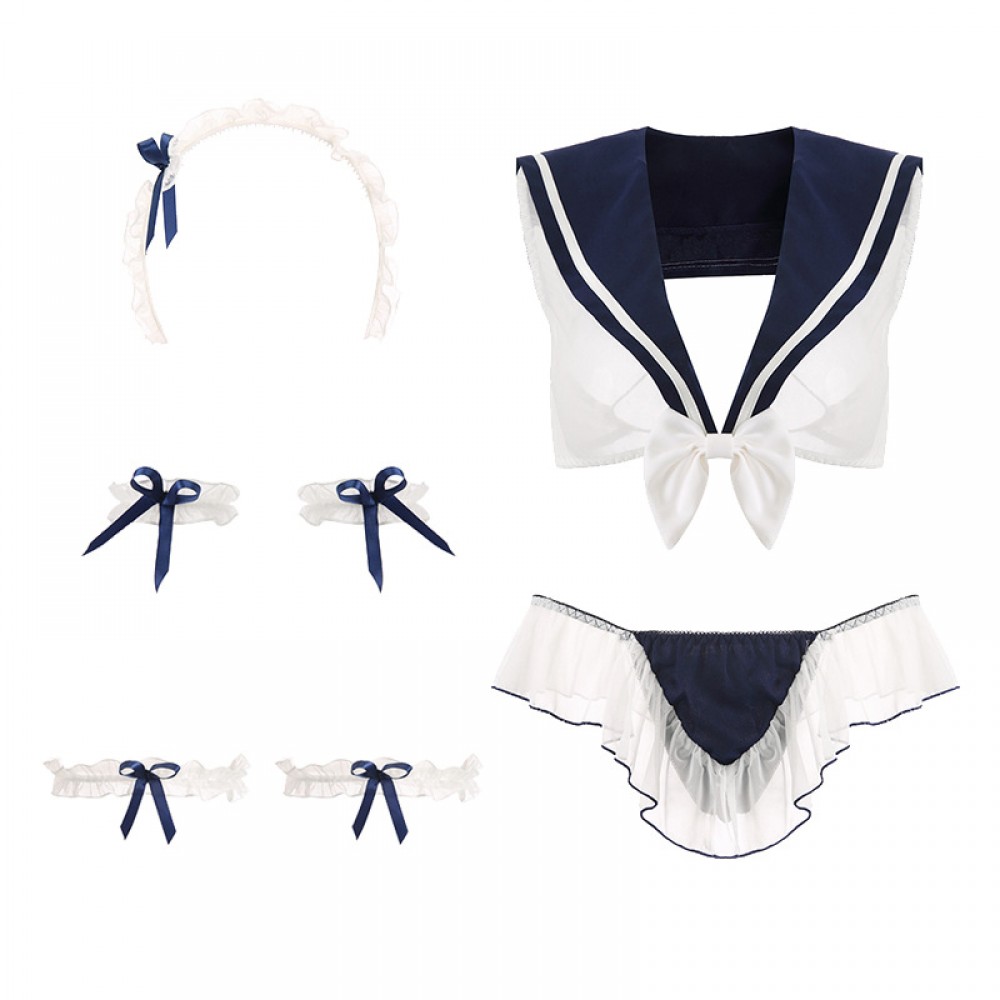 Guiruo Fun Lingerie Sexy Lace Perspective Temptation Three Point Low cut Student Suit Sailor Uniform Set 503