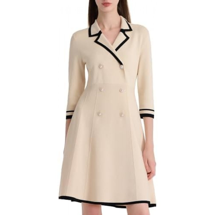 - FEATURE - The black dress for women features a V neck, A-line silhouette, double-breasted pearl-like buttons and white trim accents on the collar, cuffs, and hem. Perfect for formal occasions or office wear.