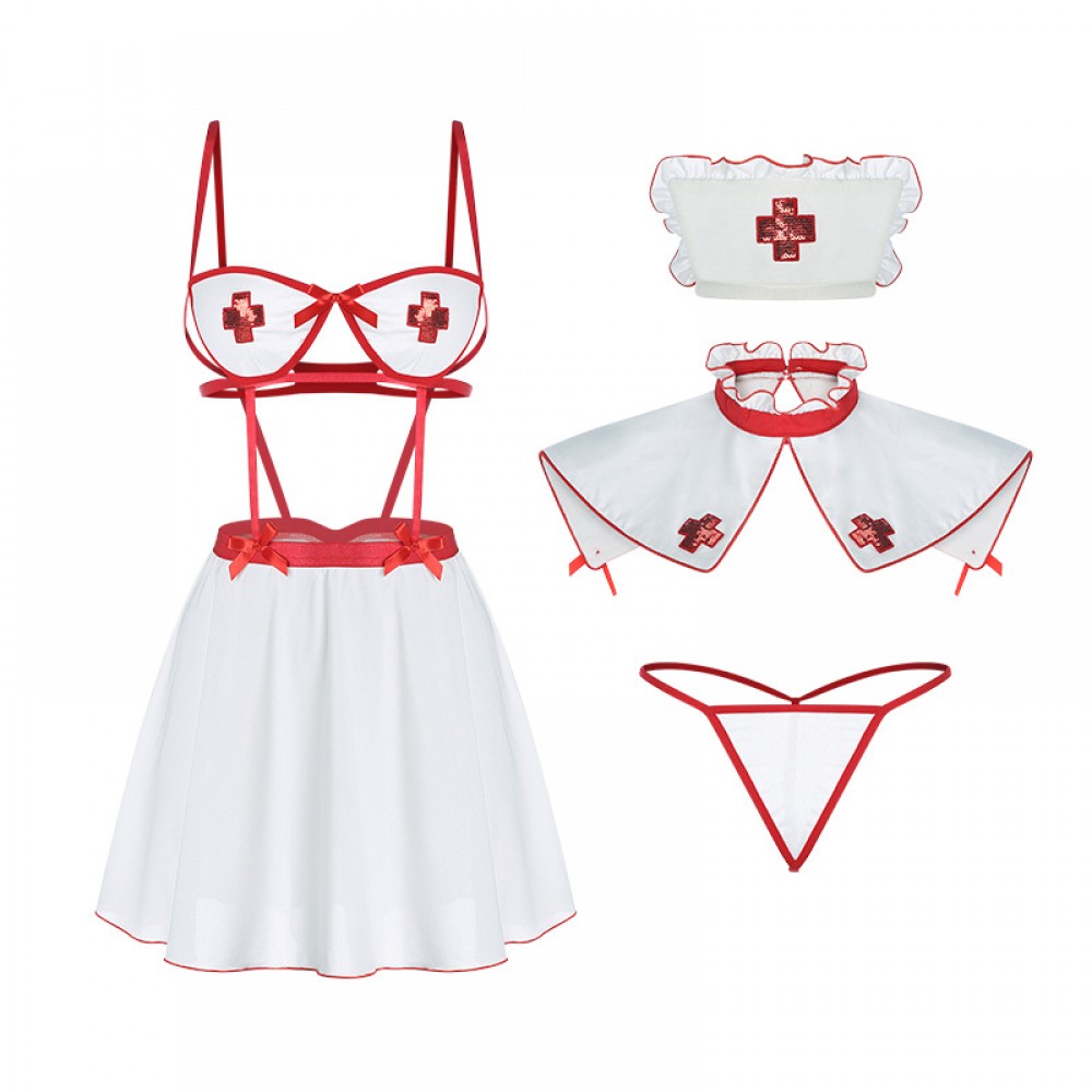 Guiruo Fun Lingerie Sexy Hot Hollow out Temptation Female Open Back Nurse Dress Role Playing Uniform Set 2768