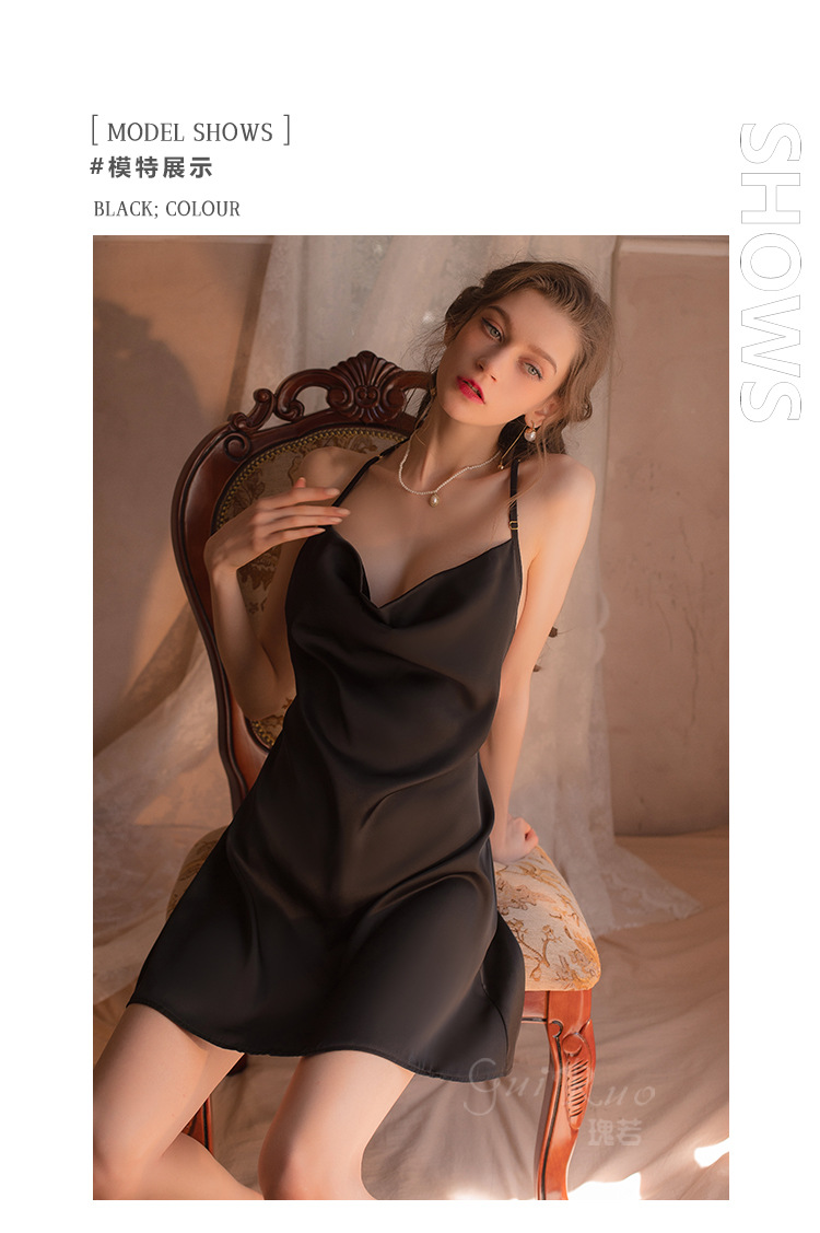 Guiruo brand's new sexy pajamas with suspenders, pajamas with swing collar, backless pajamas, home clothing set, can be worn externally 1571