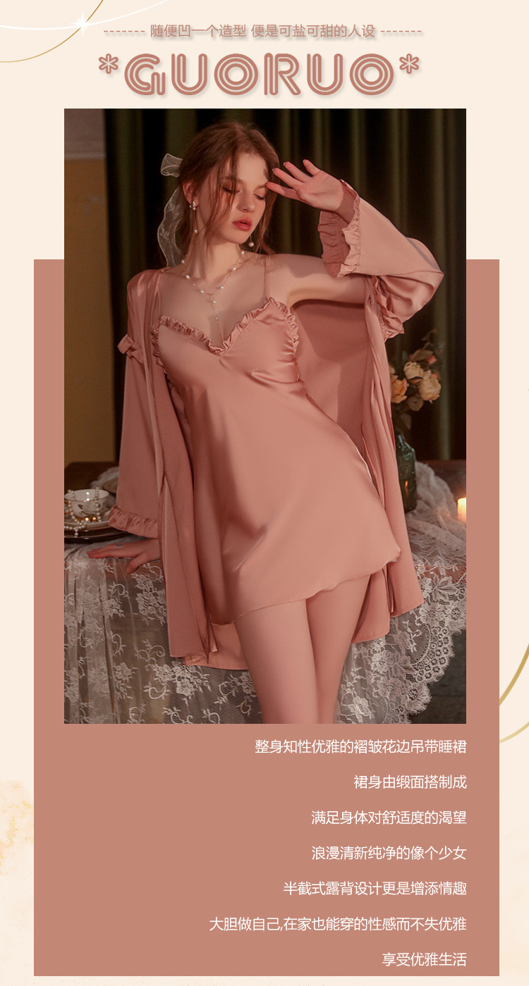 Guiruo Brand Women's Pajamas Sexy Hanging Robe Girl Sweet Network Red Home Fur Set Can Be Outworn 2199