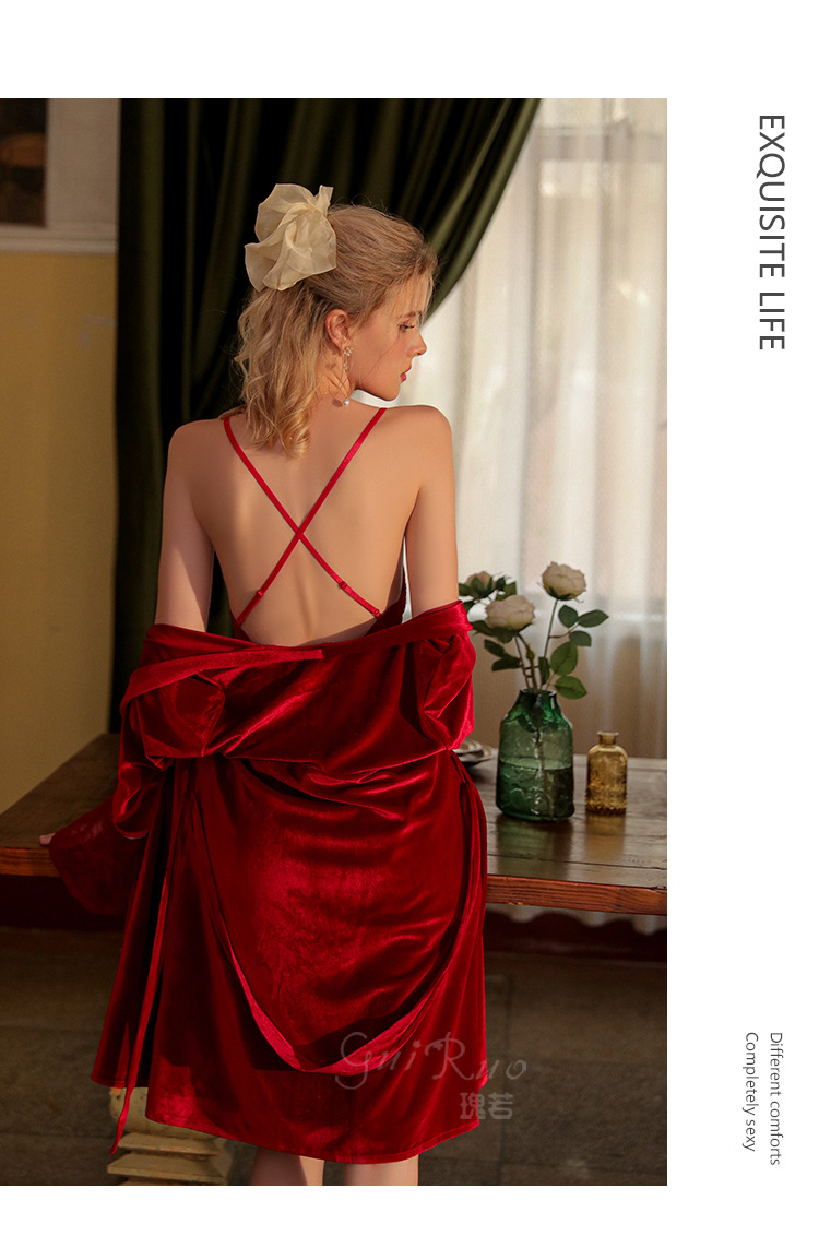 Guiruo Brand Small Chest Display Large Pajama Chest Pad Velvet Open Back Suspended Sleeping Dress Outer Robe Women's Home Fur Set 2521