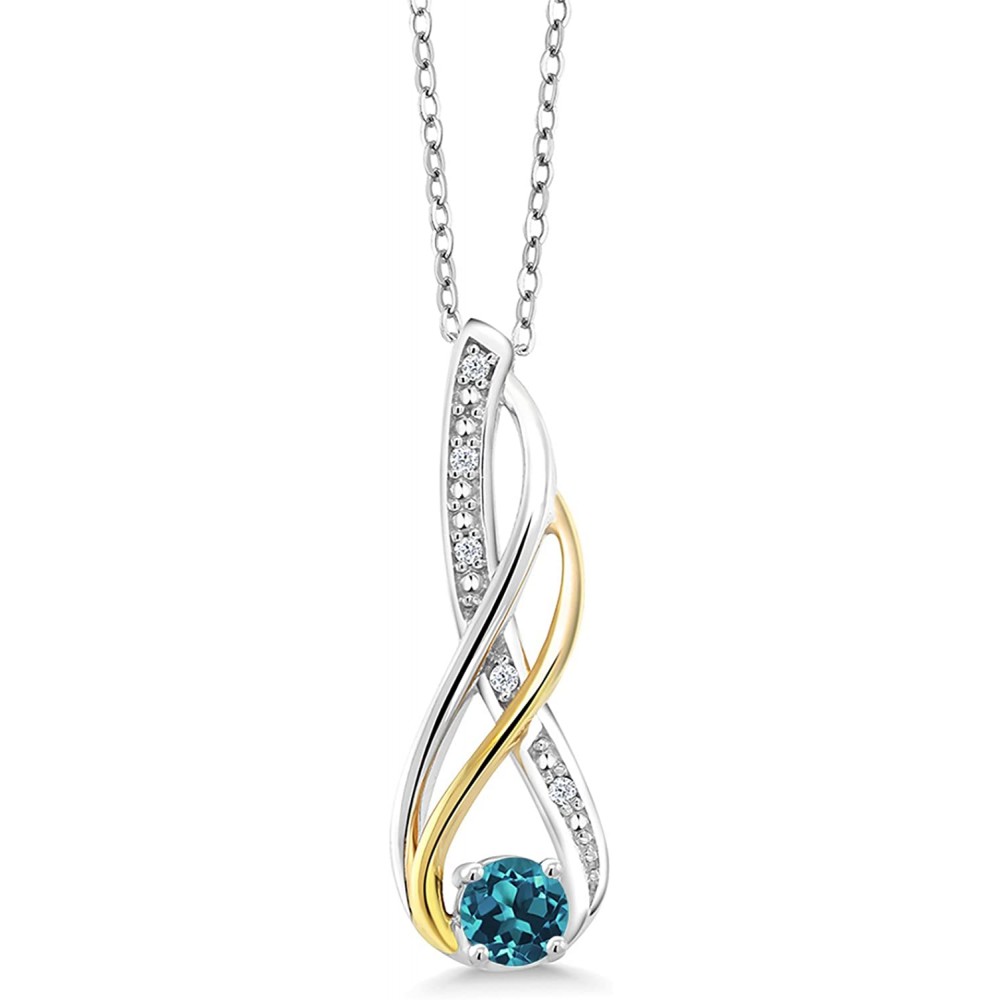 Gem Stone King 2-Tone 10K Yellow Gold And 925 Sterling Silver Round London Blue Topaz and Diamond Infinity Pendant Necklace For Women (0.34 Cttw with 18 Inch Chain)