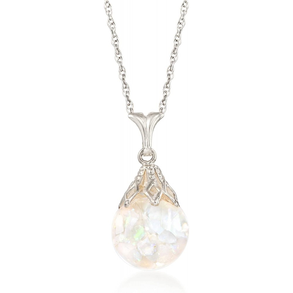 Ross-Simons Floating Opal Pendant Necklace in 14kt White Gold. 20 inches