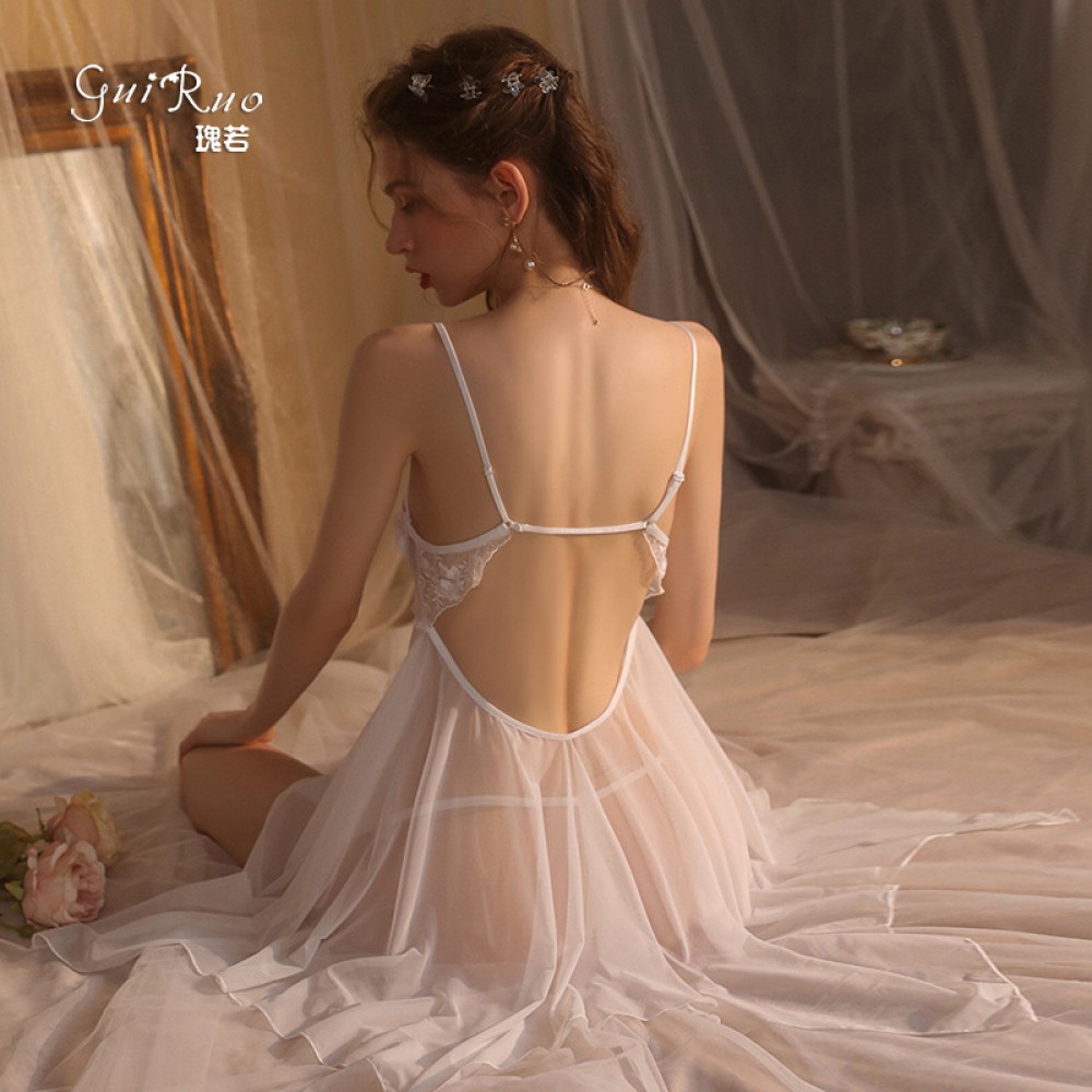 Guiruo Fun Lingerie Sexy Hollow out Hanging Pajama Dress Hot Steel Ring Gathering Pajama Women's Uniform Set 2378