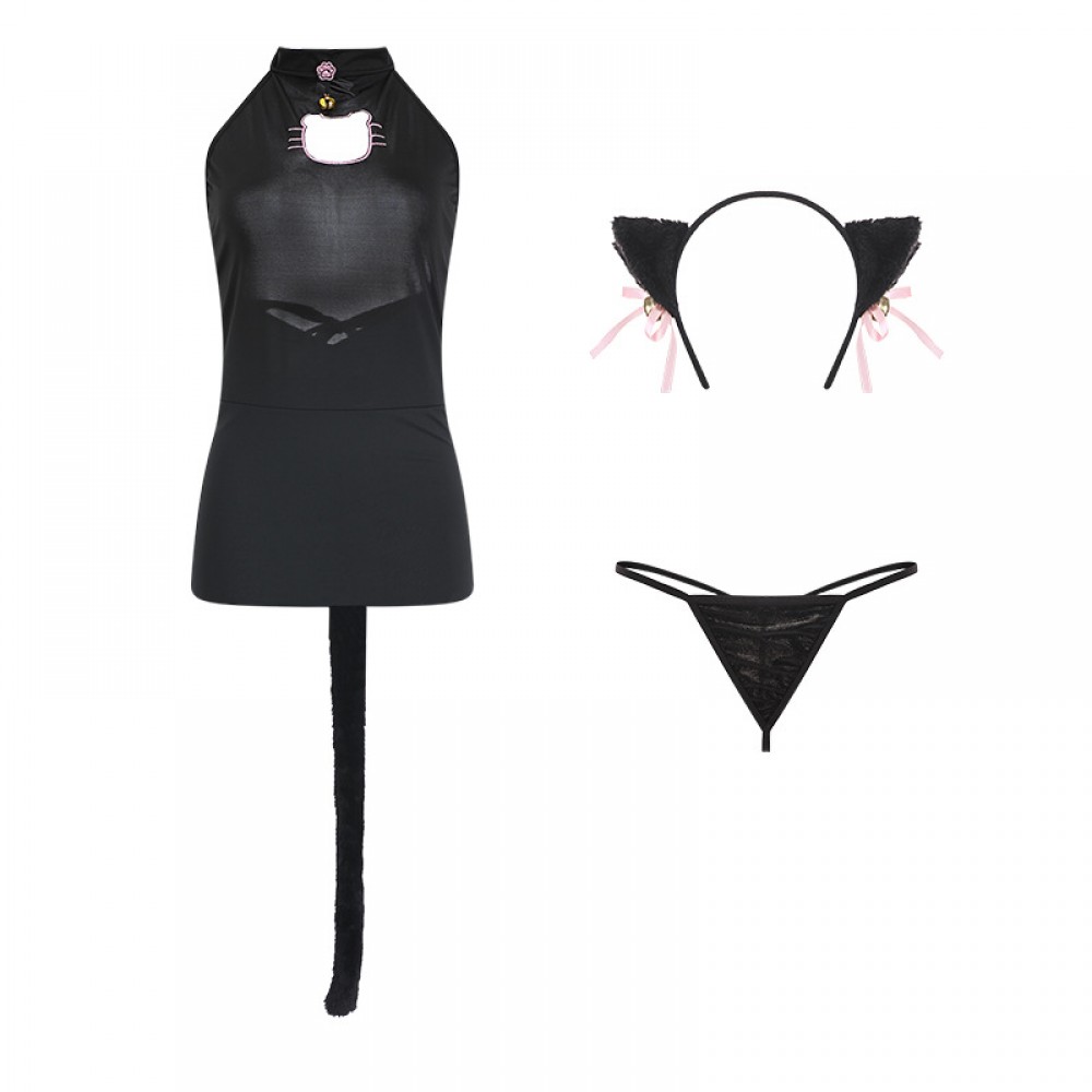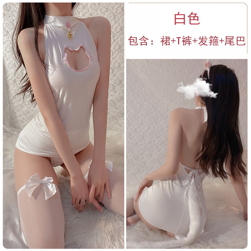 Guiruo Fun Lingerie Sexy Hollow Out Dew Breast Temptation Hanging Neck Slim Fit Sleeping Dress Cat Girl Uniform Sexy Set 805