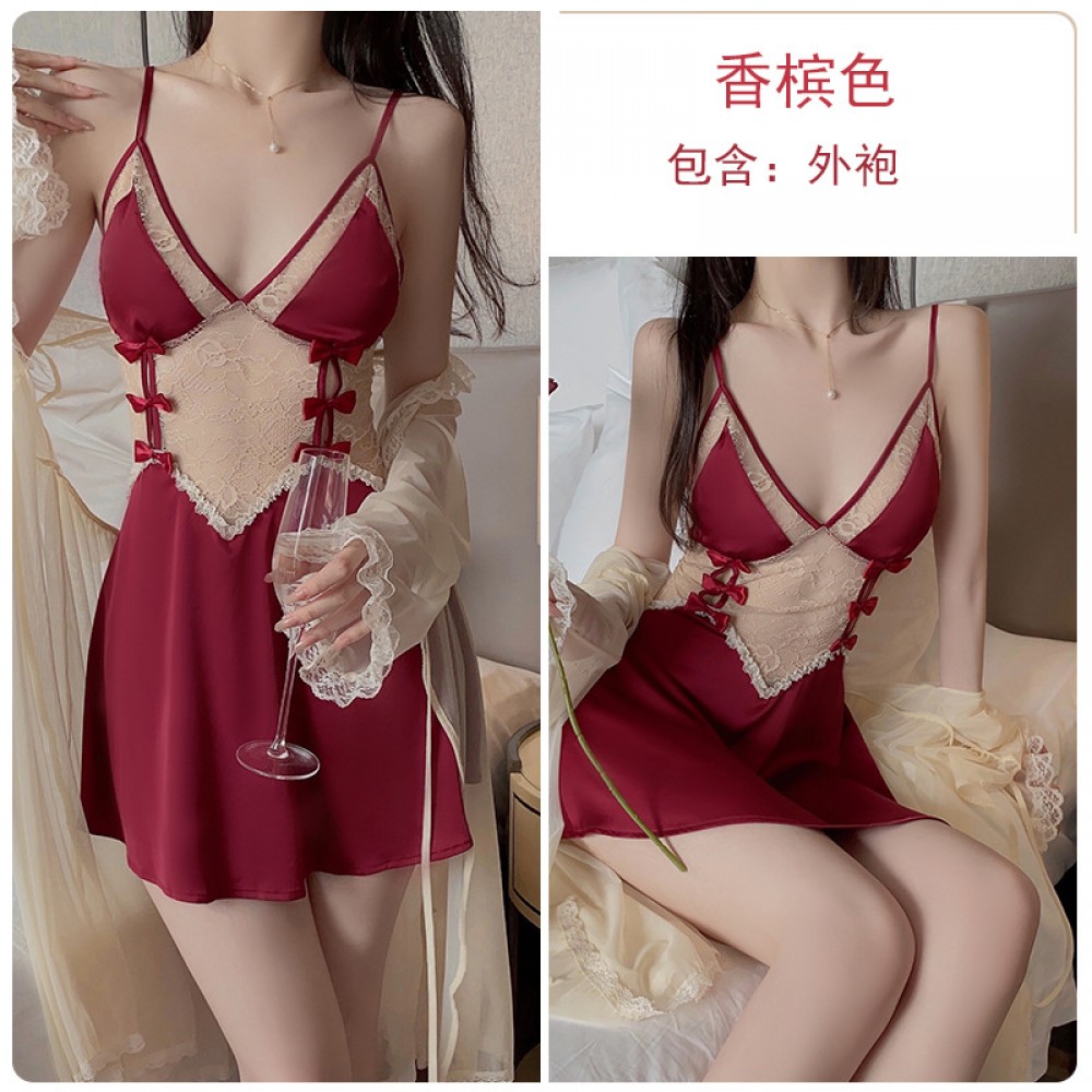 Guiruo Brand Sweet Girl Backless Pajamas Lace Bow Private Room Suspended Nightwear Home Suit Set 1667