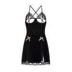 Qiruo Autumn and Winter Fun Lingerie Sexy Velvet Thin Backless Pajamas, Breast Drop Skirt, Home Suit Set 1590