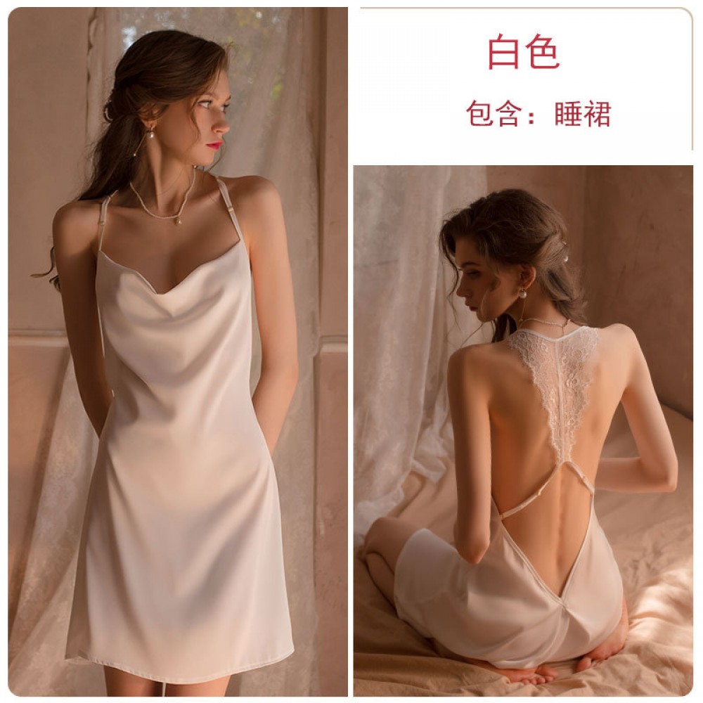 Guiruo Autumn and Winter Sexy Deep V Pajamas Women's Hot Backless Temptation Sling Sleeping Dress Home Fury Set Issued on behalf of 1571