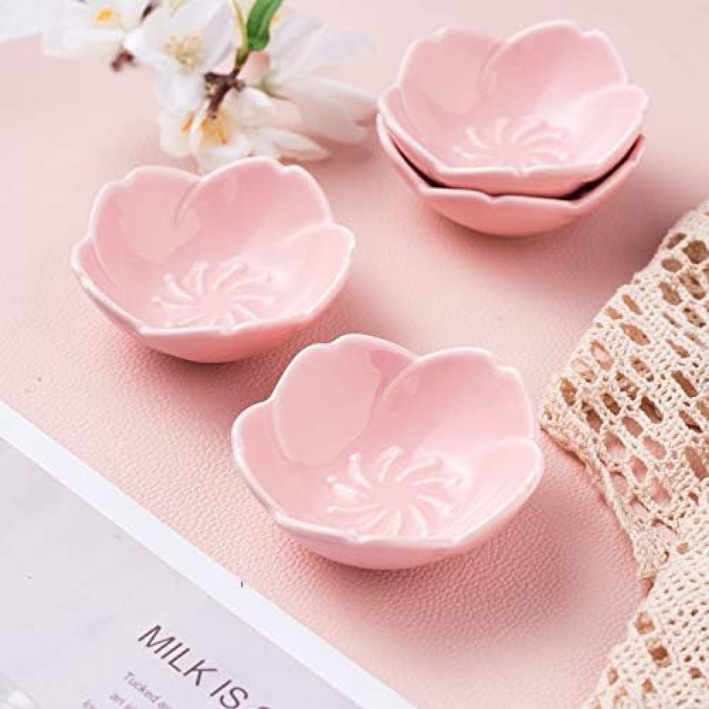 Jusalpha Pink Cherry Blossom Porcelain Sauce/Seasoning Dish, Sushi Soy Dipping Bowl, Dessert, Appetizer Plates, Serving Dish for Kitchen Home (Set of 4, Pink)