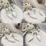 Womens Pointed Toe Satin Wedding Shoes Fashion Rhinestone Ankle Strap Buckle Bridal Court Prom Shoes White Stiletto High Heel,White,35 EU